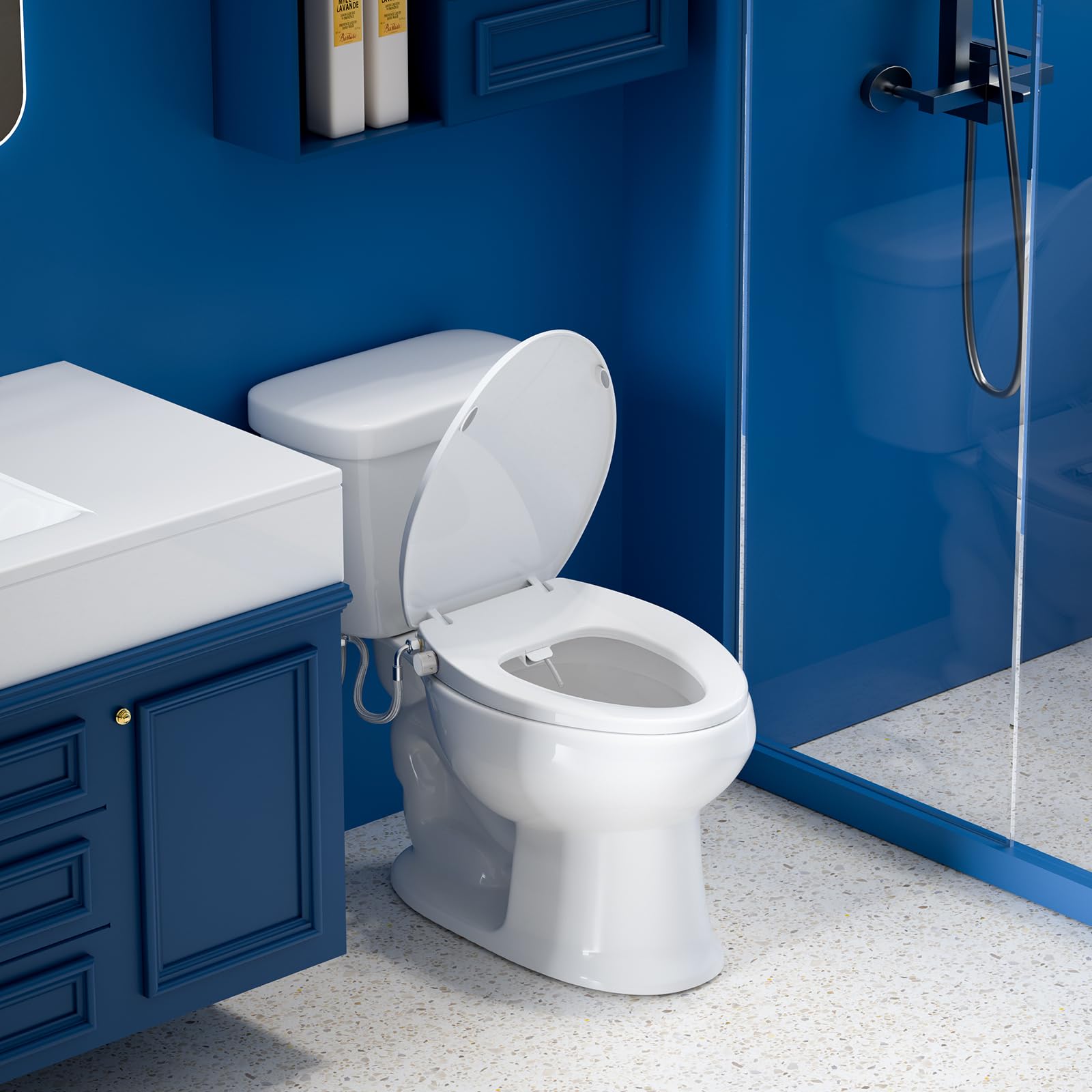 - ✅ FITS ELONGATED TOILETS & EASY INSTALLATION – Measuring 17.5"L x 14"W x 2”H, this bidet toilet seat is designed to fit most elongated toilets for a seamless upgrade. Comes with all necessary parts for a quick, tool-free installation—no plumber required! Enjoy a cleaner, more comfortable experience in just minutes.